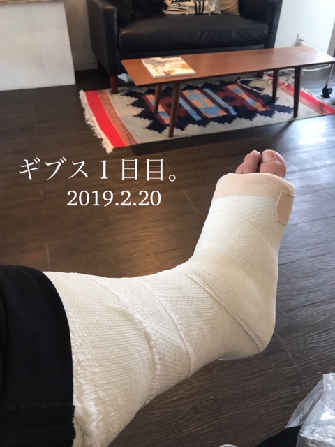 ギブス?ギプスを巻かれました。